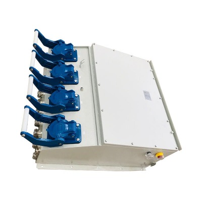 - Caixa de conexão em terra: Localizado no cais, este gabinete abriga os disjuntores, tomadas e equipamentos de monitoramento.